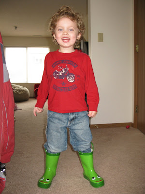 They are cute froggy rainboots and Evan wore them all afternoon.